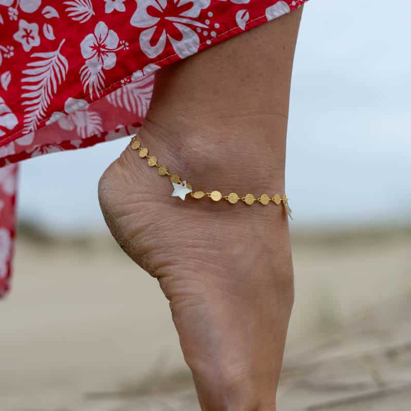 Chaîne de cheville en acier inoxydable doré avec des Nacres Étoiles – Ajoutez une touche estivale à votre look